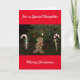 Cute Gingerbread Man Navidades Tarjeta De Saludo. Personaliza fuera de la tarjeta para leer a la Hija, Hijo, Tía, Abuela, etc. Front of Card tiene una escena de Navidades festivos con un feliz hombre de pan de jengibre sosteniendo un regalo envuelto, canes de golosinas y coloridas luces de árboles de vacaciones al aire libre. El interior tiene un mensaje especial y dulces rosas y azules, rojos y blancos. Personalice el interior de la tarjeta con el nombre de su familia. Deje el mensaje dentro de la tarjeta, o elimine e inserte el suyo, si lo desea. Back of Card tiene obras de arte más pequeñas de un árbol de Navidad verde y anticuado con estrella amarilla, bastones de caramelo y JOY escrito en una falda de árbol rojo con hojas huecas y bayas rojas y el texto, Paz en la Tierra. Bonita tarjeta de vacaciones para Navidades a enviar a la familia y amigos. Fotografía original, obras de arte y el discurso verso de TamiraZDesigns.
