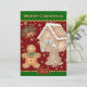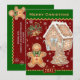 Navidades Cocinando / Tarjeta de horneado con un hombre vintage de jengibre junto con la casa y el árbol de Navidad hecho de pan de jengibre y copos de nieve cayendo por ahí. Cambia fácilmente el mensaje de año nuevo y de vacaciones a tu tarjeta familiar personalizada.