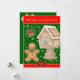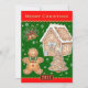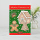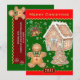 Tarjeta de horneado tradicional para Navidades que incluye pan de jengibre, junto con la casa y el árbol de Navidad hechos de pan de jengibre y copos de nieve cayendo por ahí. Cambia fácilmente el mensaje de año nuevo y de vacaciones a tu tarjeta familiar personalizada.
