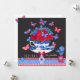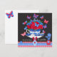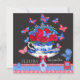 Tarjeta de la taza de porcelana de flores azules y rojas y mariposas sobre un fondo de pizarra. Forma un par con la jaula de porcelana de flores y la jaula de porcelana de flores. Para todos los amantes de los colores franceses y de la porcelana azul y blanca. Adecuado para cumpleaños, obtén, simpatía, deseos de día de la madre y más.