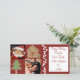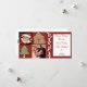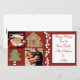Envíe sus saludos del día de fiesta con estas tarjetas caprichosas de la foto del caramelo del navidad. Atracción de un fondo rojo del navidad con el caramelo de hierbabuena, una casa de pan de jengibre y una galleta del navidad. Inserte su propio saludo y fotos de encargo usando la plantilla de la fraseología