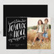 Un diseño moderno de tipografía preciosa y de detalles a mano que lee "Joyeux Noel" y ofrece una foto del mismo tamaño de su familia feliz. Espacio en la parte posterior para que usted añada un mensaje adicional del día de fiesta o más fotos si usted desea. Una tarjeta hermosa, contemporánea para cualquier saludo del día de fiesta.