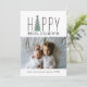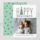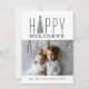 Una tarjeta festiva y moderna de la foto del día de fiesta que lee "buenas fiestas" y ofrece un ilustracion moderno del árbol de navidad.