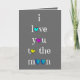 Tarjeta de la tarjeta del día de San Valentín; te quiero a la luna y a la parte posterior; letras blancas en fondo gris