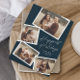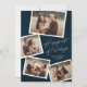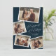 Tarjeta de las fiestas más felices de Collage de Fotos 4 Script Moderna con mensaje adicional de la familia en el reverso. Haga clic en el botón personalizar para personalizar este diseño con sus fotos y texto.