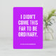 Destacar con cada palabra. Esta apasionante tarjeta rosa muestra el audaz mensaje: "No llegué tan lejos para ser común." — un perfecto recordatorio de perseguir sueños sin arrepentirse. Ya sea que estés animando a un graduado, celebrando un hito, o sorprendiendo a un amigo que se está nivelando en la vida, esta tarjeta personalizado hace un regalo motivacional inolvidable. Personalízalo dentro con tu propio mensaje para un toque verdaderamente significativo. Perfecto para: Graduación | Hitos de carrera | Motivación del jefe de la novia | Regalos de amor propio | Alentamiento para amigos o hijas