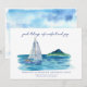 Tarjeta de Navidades acuáticos náuticos náuticos de la costa: ofrece una magnífica y tranquila acuarela con velero y mar azul claro. El saludo dice "Buenas novedades de confort y alegría. "También habrá Mares y Saludos disponibles. La tarjeta está personalizada con el nombre de su familia o de su empresa, y hay una línea adicional disponible para los miembros de su familia. La tarjeta forma parte de una colección.