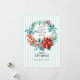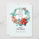 El fondo de una franja de alfiler fija el escenario para una hermosa corona de pino, bayas y flores de poinsettia. <br/>() La tarjeta es fácil de personalizar con su redacción, tipo de letra, color de fuente y elección de seis tipos de papel.<br/>() ¿No es exactamente lo que buscas? Todos nuestros productos pueden ser personalizados diseñados para satisfacer sus necesidades sin cargo adicional.<br/>() Simplemente contáctenos en heartfelthelper@gmail.com<br/>() Productos de coordinación disponibles: