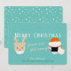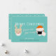 Esta bonita y moderna y divertida tarjeta de navidades/vacaciones de 2020 covid-19 cuenta con reno y santa con máscara y distanciamiento social sobre un fondo azul turquesa. En el reverso, un fondo azul turquesa con motivos de nieve blancos. Personalízalo para tus necesidades. Puedes encontrar productos coincidentes en mi tienda.