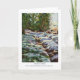 Tarjeta para Navidades con un paisaje nevado, con rayos de sol invernal en la nieve, de un suave cuadro pastel de Judy Adamson. El interior se deja en blanco para tu propio mensaje.