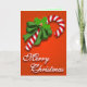 Colorida tarjeta de Navidades de caña de caramelo. Gráfico de árbol de Navidad por dentro.