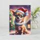 Esta cédula de saludo festiva incluye una foto de un chihuahua usando un sombrero de Santa Claus y sentado frente a un árbol de Navidad. Los grandes ojos marrones del perro y su cola ondulante seguramente le pondrán una sonrisa en la cara al receptor.