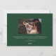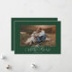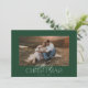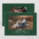 Esta tarjeta de fotos de Navidad presenta un diseño moderno pero festivo con una sola foto destacada en el frente. El fondo es un verde rico que evoca un ambiente de vacaciones clásico que recuerda a los árboles de siempre. Centrado encima o debajo de la foto, el texto "Feliz Navidad" se muestra con un elegante y moderno tipo de letra en blanco, lo que proporciona un sorprendente contraste contra el fondo verde. La sencillez del diseño de una sola foto permite que la imagen ocupe el centro del escenario, lo que la convierte en perfecta para un retrato familiar o un momento especial a partir del año. En la parte trasera de la tarjeta hay otra foto, que ofrece la oportunidad de compartir una memoria sincera o adicional. Debajo de la foto, hay espacio para un mensaje personalizado, que le permite incluir un sincero saludo de vacaciones, expresar gratitud o compartir sus deseos para el próximo año. El mensaje puede ser personalizado para incluir el nombre de la familia y el año, manteniendo el diseño cohesivo y personal.