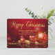 Red y oro Navidades corporativos tarjeta con oro Escritura de Feliz Navidad en un bello ornamento rojo y dorado de árbol de Navidad, copo de nieve dorado y fondo de perlas. Esta hermosa tarjeta de Navidades rojos y dorados se personaliza fácilmente añadiendo tu mensaje y logotipo en el estilo de letra y color de tu elección.