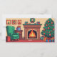 Este diseño de tarjetas para Navidades captura el estilo festivo y nostálgico "Game Retro Arcade", perfecto para los aficionados a los videojuegos clásicos. La parte delantera de la tarjeta incluye tres espacios dedicados para subir fotos familiares personales, lo que le permite añadir un toque personalizado a sus saludos de vacaciones. El fondo muestra una vibrante escena pixelada de una acogedora sala de estar de Navidades. La chimenea está rodeada de decoraciones festivas, como un árbol de Navidad adornado con adornos rojos y luces intermitentes. Un sillón verde se sienta al lado de una mesa llena de regalos. Encima de la chimenea, una corona de Navidades y ilustraciones enmarcados decoran la pared. La inscripción en negrita "Feliz Navidad" realza el ambiente retro de la tarjeta, lo que la convierte en una deliciosa elección para difundir alegría por las vacaciones.