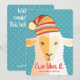 Carne Guay con un gorra de invierno de punto o ganchillo en esta tarjeta de Navidades "hechos a mano con amor" para sus proyectos de manualidades de tejido y crochet.