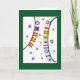 Esta tarjeta de vacaciones para Navidades incluye una serie de letras de la bandera marítima en las que se explican las palabras "Feliz Navidad", volando verticalmente a lo largo de las líneas verdes de vacaciones sobre un fondo salpicado de copos de nieve. La plantilla que saluda dentro es "¡Volando nuestras banderas para indicar una Feliz Navidad!" y debajo, una plantilla para tu nombre o firma familiar. Disponible en 3 tamaños.