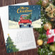 Envíe cálidos deseos de vacaciones con esta encantadora tarjeta de Navidades de estilo vintage que incluye una camioneta roja que lleva un árbol decorado a través de un bosque nevado. El nostálgico ilustracion y el audaz saludo "Feliz Navidad" capturan la magia de una acogedora y campestre fiesta. Personalizar la espalda con el nombre de su familia y el mensaje más sincero. Una elección perfecta para aquellos que aman el encanto de una casa de campo y las tradiciones de Navidades intemporales, ¡no se necesita foto!