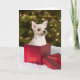 El pequeño chihuahua blanco más lindo saliendo de una caja de regalo trae sonrisas y galore de "awh's". A tus amigos y parientes amantes de los animales les encantará esta tarjeta de Navidades. El mensaje de navidades se puede personalizar. Foto original de SAP.