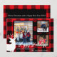 Personalizar esta tarjeta de Navidades con 3 de sus propias fotos para enviarla a toda su familia y amigos. Esta tarjeta tiene un aspecto de franja con un patrón de manchas rojas y negras como fondo. Encima se sientan las fotos con un marco negro y el ciervo blanco y el bulto así como el texto blanco. La parte posterior de la tarjeta puede utilizarse para compartir sus noticias anuales si así lo desea. Además, en la parte posterior, el patrón rojo y negro plateado sirve como marco con un espacio en blanco en el medio donde se puede usar texto blanco para escribir el mensaje.