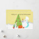 Carta de Navidades de las vacaciones de invierno de otoño con un chef de snowman, un conejito con whisk, calabaza, árbol de Navidad y fondo de nieve en esta tarjeta de vacaciones para un chef, un abastecedor, un restaurante y otros alimentos, cocina o negocio culinario.