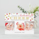 El moderno diseño de la tarjeta fotográfica de vacaciones de los Navidades incluye un collage de fotos con espacio para 3 de tus fotos familiares y una tipografía divertida y colorida que lee "Te deseo alegría feriado" a lo largo del Año Nuevo. Los postes dulces de confeti bordean el texto para un alegre diseño festivo. Personalice la tarjeta con el nombre de su familia y el año. Haga clic en el botón IT PERSONALIZAR para personalizares, mueva el texto y cree su propio diseño único de tarjeta fotográfica de vacaciones.