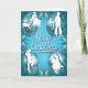 Vaqueros y vaqueras con cuerdas en un fondo azul con adornos y arcos. Personalizar el interior de la tarjeta con tu saludo personal y nombres. Vea más artículos de vacaciones occidentales en la tienda Rodeo Days.