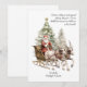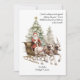 Navidades tarjeta Invitación de embarazo con tradicional santa claus en el trineo tirado por reno con fondo de árbol de navidad. Personalice con sus navidades saludos, fecha de vencimiento del bebé y nombres.