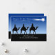 Una imagen típica de Belén de tres hombres sabios en el camello con una luz guía brillante. Envíe sus saludos de vacaciones con esta tarjeta de fiesta de temática religiosa.