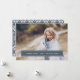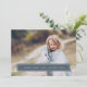 Las sencillas y modernas tarjetas de fotos navideñas incluyen tu foto horizontal o paisajística favorita en todo el sangrado, con un opaco superpuesto azul-gris con tu saludo de vacaciones, nombre de familia y el año.