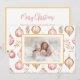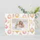 Tus amigos y familia lo disfrutarán tanto cuando les envíes o les das tus tarjetas que tienen este hermoso diseño de adornos rosa y dorado. Sobre todo cuando incluye tu propia foto familiar. El bonito patrón de esta tarjeta de vacaciones llana es un bonito patrón de acuarela vintage. Todo el texto se puede editar. "Feliz Navidad". Por detrás hay un sentimiento sugerido que se puede mantener o cambiar a sus propias palabras. Asegúrese de editar los nombres de ejemplo y la fecha de sus opciones.
