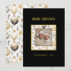 Esta hermosa tarjeta de Navidades presenta un patrón acuarela de adornos dorados, plateados y negros vintage que es muy elegante. "Feliz Navidad" está en un falso texto de color dorado. Edite los nombres y la fecha "de". La característica principal de la parte delantera de esta tarjeta plana es una bonita foto familiar. Asegúrese de reemplazar nuestra foto de ejemplo por la suya propia.