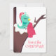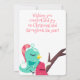 Un pájaro super lindo sentado en un árbol, usando un gorra de invierno, con aguja e hilo, tela de coser en esta tarjeta de Navidades de costurera "hecha a mano con amor" para regalar tu lista con vigas y regalos hechos a mano.
