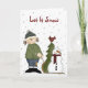 Tarjeta de felicitación para Navidades personalizados hecha con gráficos de estilo primitivo de país. Una linda niña, jugando en la nieve, está tirando de un muñeco de nieve, en un trineo. Personaliza el saludo interno para decir lo que quieras. Tarjeta de Navidades muy dulce.