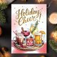 Esparza el espíritu festivo con esta vibrante tarjeta "Holiday Cheer!" que incluye una atractiva variedad de bebidas de vacaciones. Desde un acogedor chocolate caliente con crema batida y dulces hasta refrescantes cócteles adornados con cítricos y arándanos, esta preciosa carta ilustrada es perfecta para los que les gusta celebrar la temporada con estilo. El diseño acuático capta el calor y la alegría de las vacaciones, lo que lo convierte en el saludo perfecto para amigos, familiares o colegas que disfrutan de un brindis festivo.