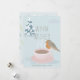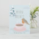 Esta tierna tarjeta de navidades "cálidos deseos" incluye una taza de café rosa llena de café y un ladrón sobre fondo azul claro con un árbol cubierto de nieve. El reverso presenta un fondo floral azul claro de vacaciones con poinsettias en blanco y hueco. Personalízalo para tus necesidades.