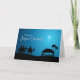 Navidades saludando la carta con la escena de la natividad en Belén, los tres sabios en camellos guiados por la estrella, María, José y el bebé Jesús en un pesebre, rodeados de animales. Puede personalizar esta tarjeta con su propio texto personalizado.
