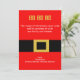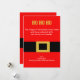 ¡¡HO HO HO!! Pon una sonrisa en tus amigos y caras familiares con esta linda tarjeta de felicitación de Navidades. Es de la chaqueta de Santa, un rojo brillante con un cinturón negro a través del centro que tiene una hebilla cuadrada de oro. Personalice con toda la información de su fiesta. Echa un vistazo a los muchos otros estilos y colores que tenemos en las cartas.
