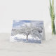 Esta tarjeta de Navidades de personalizable (texto frontal e interior) muestra una foto de un árbol de acento cuyos ramos están cargados de nieve recién caída. Un cielo azul brillante con nubes de plumaje blancas por encima y suelo cubierto de nieve por debajo. Texto frontal: "Pensando en ti" y texto interno: "La temporada de fiestas está sobre nosotros y con ella vienen recuerdos de veces pasadas con queridos amigos. Estás entre esos queridos amigos y queríamos hacerte saber que estamos pensando en ti y deseándote una Feliz Navidad y Feliz Año Nuevo".