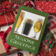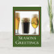 La tarjeta de vacaciones festiva para amantes de la cerveza incluye una foto de tres vasos de cerveza / ale con adornos y texto de personalizable sobre fondo verde.