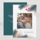 Esta hermosa tarjeta de Navidades de 5" x 7" presenta un ilustracion personalizado de exuberantes ramos de pino, bayas y acentos metálicos falsos para enmarcar su foto. El servidor incluye espacio para agregar un mensaje personal o fotos adicionales.
