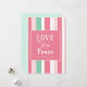 "Love Joy Peace" es un mensaje de Navidades maravilloso; sin embargo, puede ser editado para que puedas cambiar la redacción si quieres. Las maravillosas franjas rosas y verdes de menta se ven justo en una tarjeta de vacaciones. Asegúrese de editar los nombres de ejemplo y la fecha a los que desea que aparezcan allí.