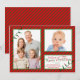 Esta festiva y divertida tarjeta de foto personalizada de Navidad tiene cuerdas de Navidades rojos y verdes con luces de un fondo rayado de color verde y rojo con dos marcos con un aspecto de costura verde que los rodea para su personalizar, agregando sus propias fotos digitales a. Si necesita algún elemento coincidente, como franqueo, o un sello para sobres, o si necesita ayuda, envíe un correo electrónico a niteowlstudio@gmail.com.