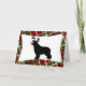 Fun Newfoundland Navidades Card tiene la silueta de raza de perro, con cornillos de renos y una nariz brillante de color rojo brillante. El fondo es una alegre estancia llena de rojos y verdes. En el interior se puede leer: "¡Les deseo a ustedes y a su familia una maravillosa temporada de vacaciones!" Personaliza el mensaje a tu propia facilidad. Cute tarjetas de Navidades amantes de los perros.