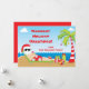 Divertido y festivo Santa en la tarjeta de Navidades Beach Holiday.