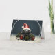 Esta tarjeta de Navidades muy festiva muestra una linda araña de Santa sentada y agarrando decoraciones navideñas mientras se prepara para toda la diversión de las fiestas. Las palabras que hay dentro dicen: "Estoy listo para los Navidades. ¿Eres tú?"