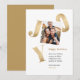 Fresco y moderno con un ambiente festivo alegre. Esta tarjeta de Navidades de vacaciones familiares presenta una combinación de fuentes elegantes y modernas en oro de imitación. El texto FRONT se establece en un color de fondo blanco. Personalizar la foto, el texto y las escrituras para hacerlo propio.