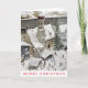 Una hermosa vista de una exhibición de invierno en la iglesia y el mensaje "Feliz Navidad" impreso en la parte delantera de una tarjeta de Navidades dejada en blanco dentro para tu propio mensaje personal.