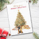 En la parte delantera de esta tarjeta de Navidades, un adorable cachorro de Boxer se sienta frente a un árbol de vacaciones. El árbol está decorado en oro, y debajo hay paquetes de regalos a juego. El texto dorado y rojo dice "Deseándote una NAVIDAD FERIADA". Dentro de los campos de texto que puede personalizar a cualquier cosa que desee. Asegúrese de ver las otras cartas y regalos con temas de perro Boxer en nuestra tienda.