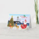 Tarjeta de Navidades del puente Mackinac con Santa, Sleigh, Reno y Árbol de Navidad